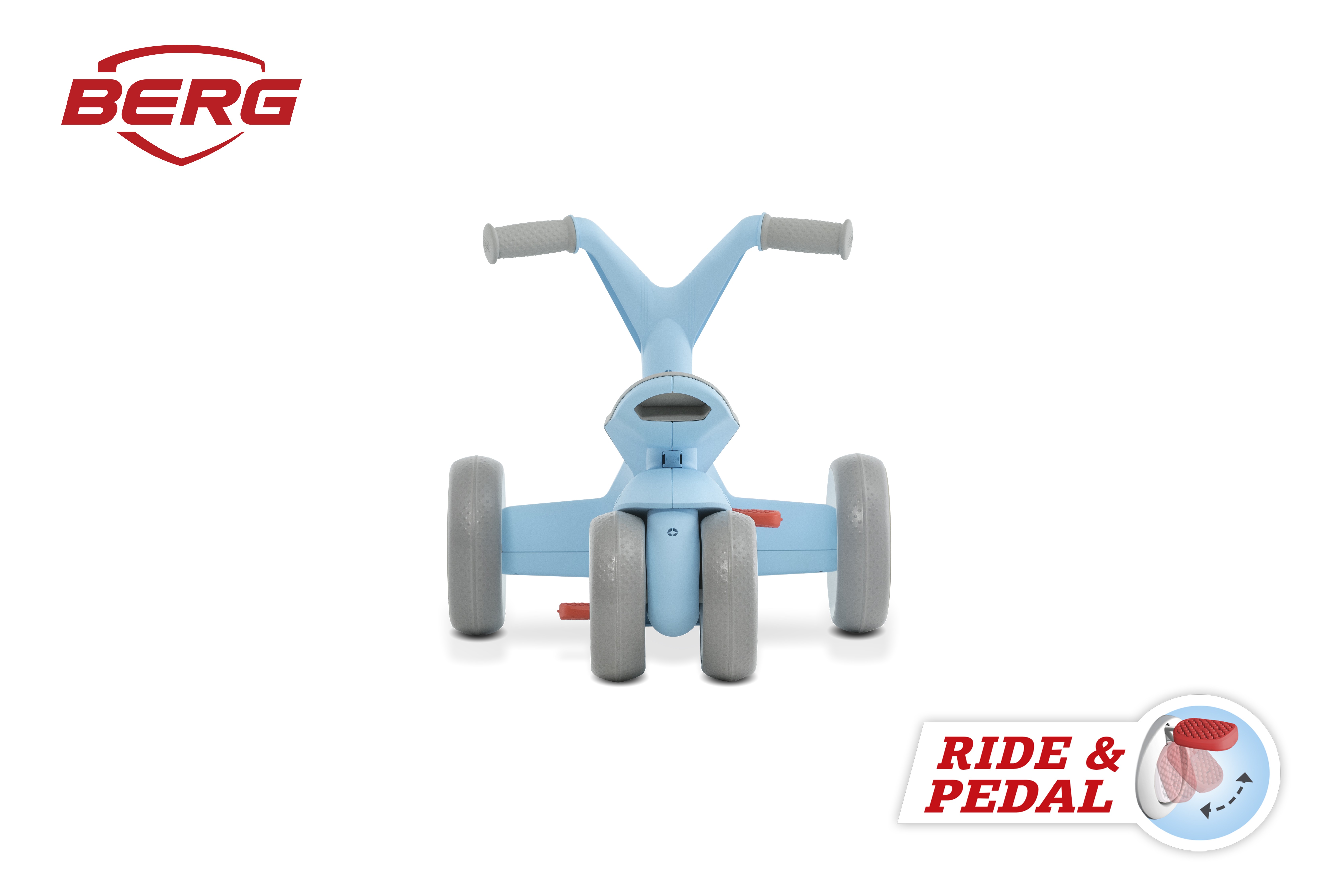 The BERG GO² saddle has a unique structure. When your child grows, he or she can sit further back. Thanks to its four wheels, the BERG GO² has excellent stability. Because tricycles have one wheel less they are prone to tipping over. Riding sharply or fast around corners on a tricycle creates dangerous situations.