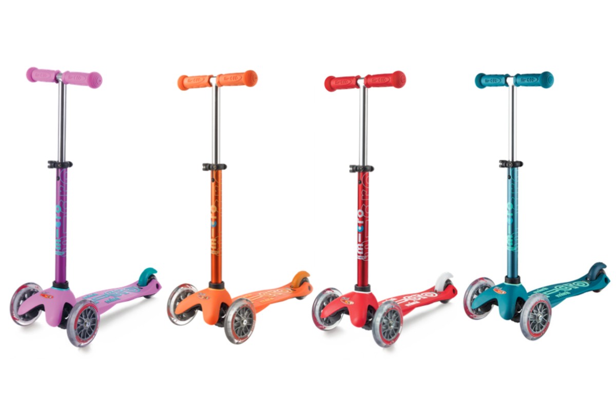 For children 2 to 5 years old Max Load: 50kg Three wheels for superior stability Wheel size: 120/80mm Wheel Material: PU Tbar Height: 49-67cm Tbar Removable Lowered board with strengthening flexiglass Product Weight: 1,95 kg Available colours: Ice Blue, Lavender, Orange and Ruby Red Patented, Swiss designJust like the MINI MICRO but with height-adjustable handlebar! Surfing the sidewalk – the Mini Micro was elected Toy of the Year by kids and parents several times ! This sports toy not only encourages movement and exercise, it also helps children to improve balance, coordination and motor skills. The Mini Micro Deluxe was specifically developed for toddlers and preschoolers in collaboration with Swiss medical professionals. The T-tube handle makes it even safer and has a safety lock so that only parents can remove it, when needed, for storing. The Mini Micro‘s unique lean-and-steer mechanism is patented and the deck is reinforced with fiberglass. The soft plastic and rounded edges make it easier for younger children to handle and helps avoid injuries. Now available as DELUXE version !