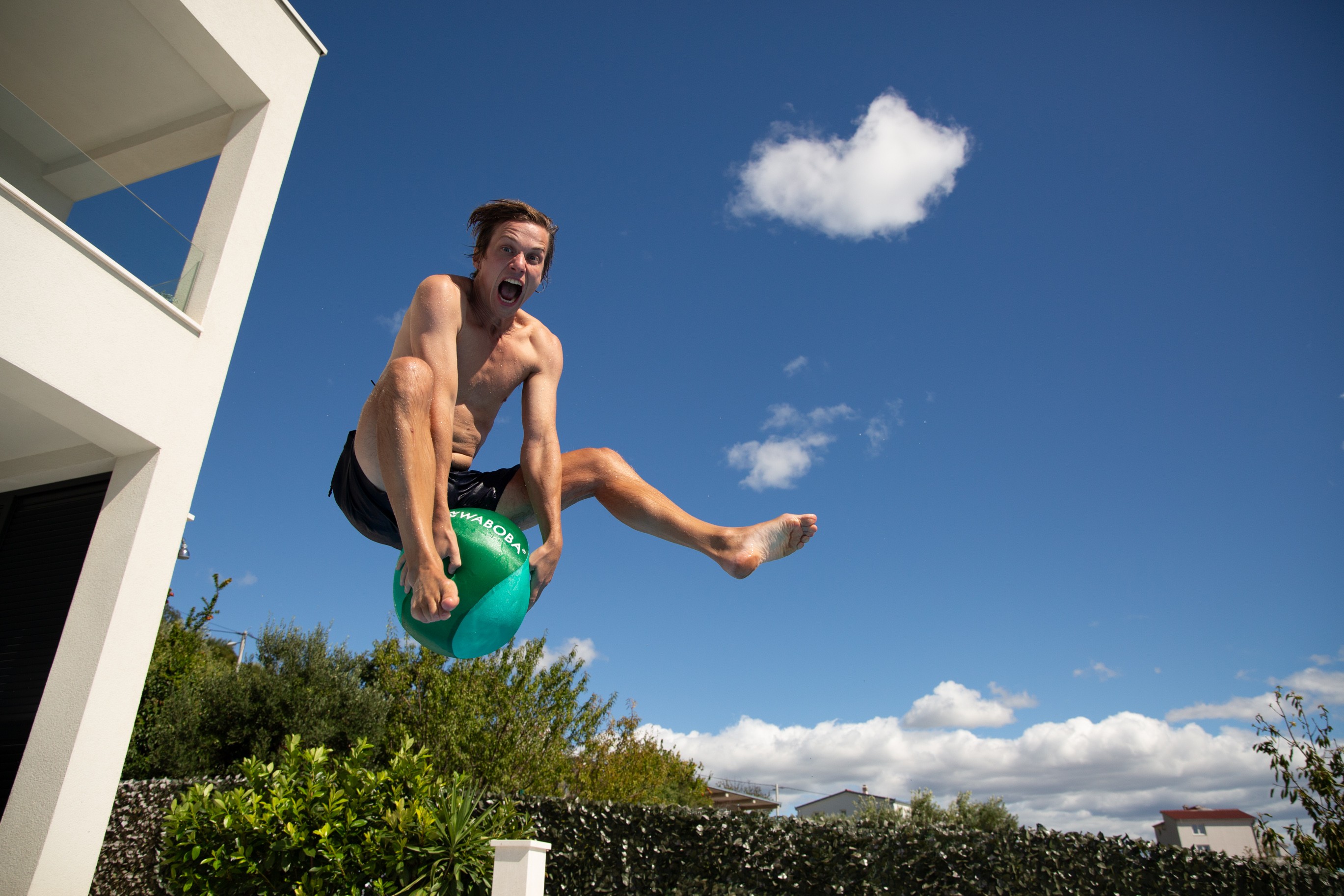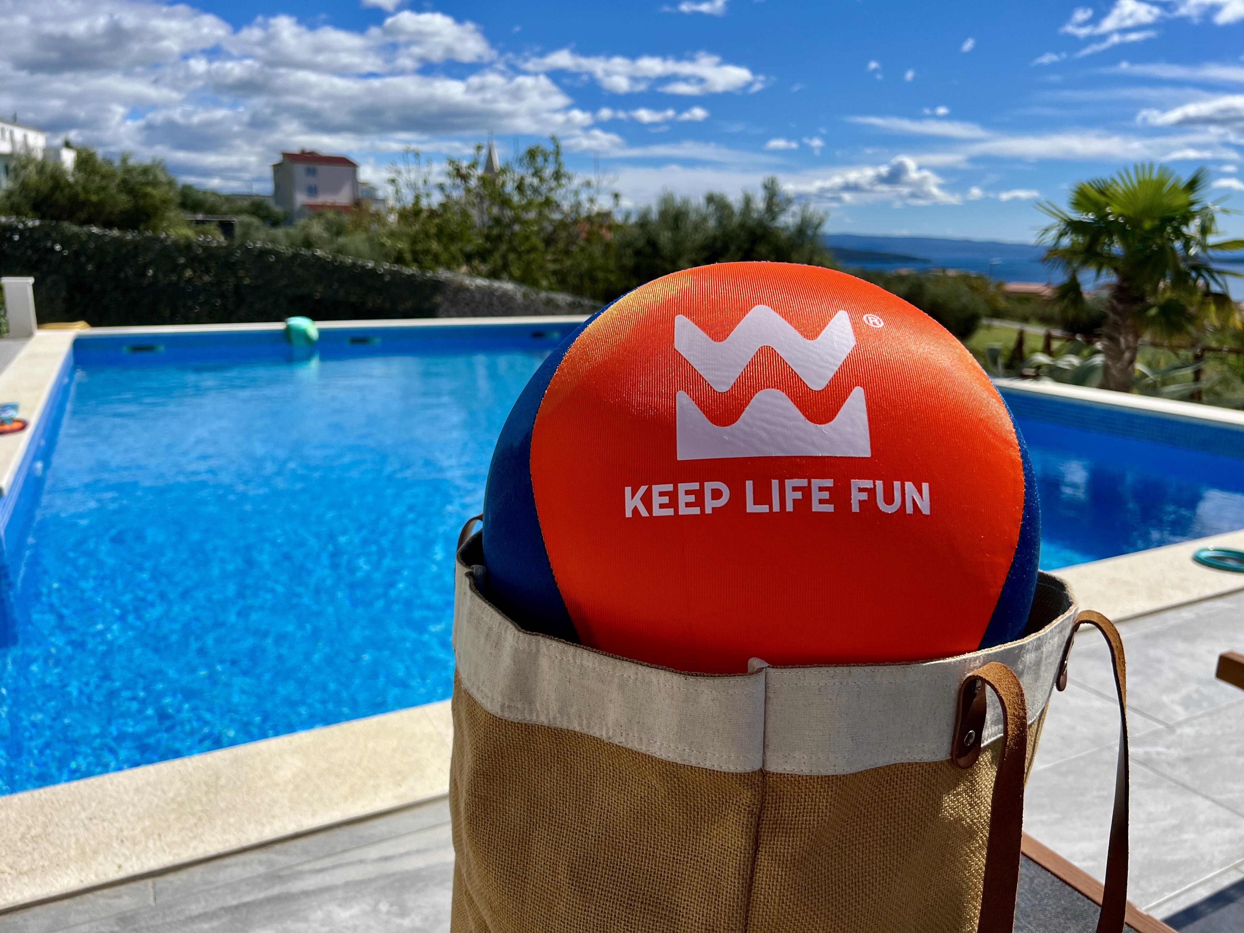Big time fun! When a jumbo beach ball is around, you know it’s a party. Our extra large beach ball is back. Now with a lighter skin and faster drying material. The deluxe inflatable Waboba beach ball features a durable polyester cover for long-lasting play. Fun for beach and pool games!